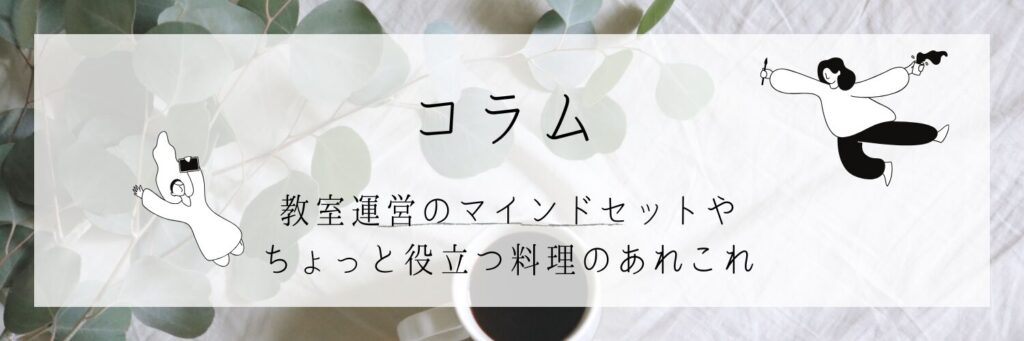 これまでの教室運営から見えてきた、続けていくための考え方や、料理にまつわるちょっとしたヒントをコラムでお伝えしています。